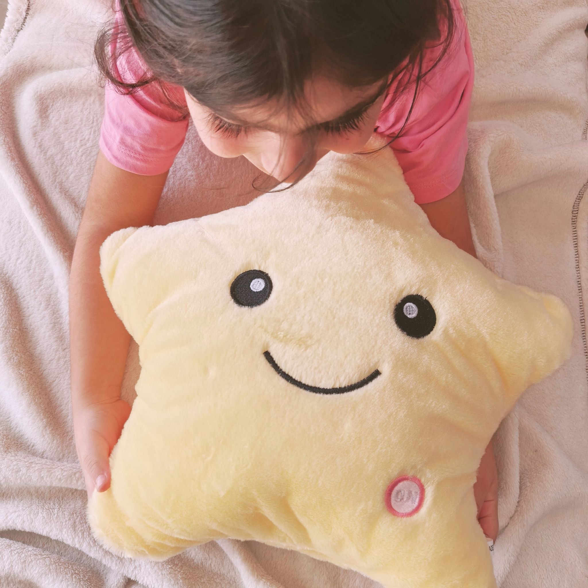 My daughter never slept on her own because she's afraid of the dark. Instead of getting her a nightlight, I got her one of these stars that light up. It's like a 3 in 1: nightlight, plush toy and pillow. She loves it.